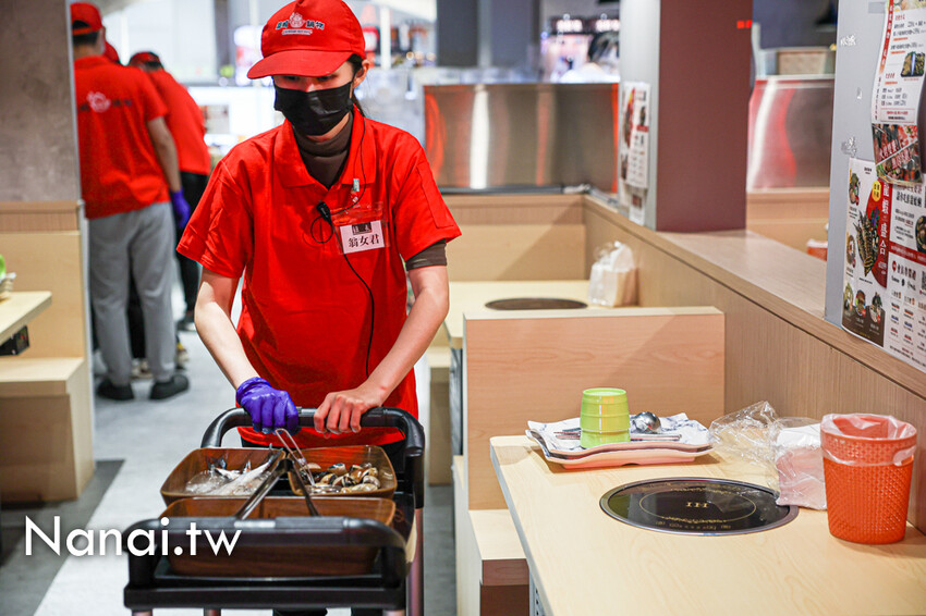 除了標準的四人、六人座外,還設計單人和雙人座位,即便下班想一個人吃晚餐再回家,選擇單人座用餐也不尷尬,而且走道寬敞,椅子和桌子保有間距,坐起來舒適不擁擠,再加上爐具升級,使用崁入式電磁爐和無煙烤爐,可控溫,導熱速度快,一個人品嚐火鍋+燒肉吃到飽也很可以。
