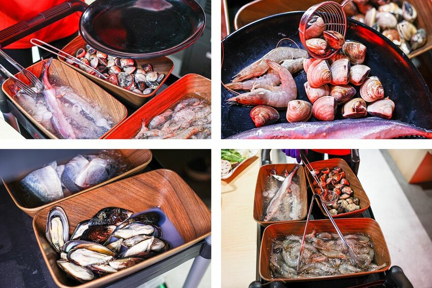 由於我們有升級海鮮吃到飽,店員會推著海鮮餐車詢問是否要續加,愛吃蝦子與蛤蜊的我們當然全部都要再來一盤,想吃多少點多少,店家完全不怕你吃,就怕你吃不完,這樣服務真的很特別耶~