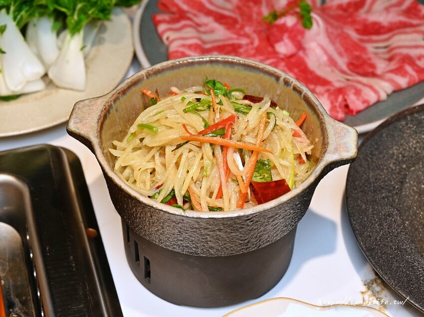 糖糖最愛的酸辣土豆絲,將馬鈴薯切成絲狀,口感爽脆,酸中帶辣超開胃,這裡的酸辣土豆絲底下會加熱,糖糖個人還是比較習慣吃涼拌的酸辣土豆絲