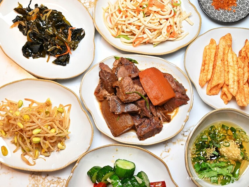 除了招待的四重奏,小料台還有各式各樣的涼拌小菜、蘿蔔燉牛肉、魯肉飯、十三香魚薯條及當季水果可以無限享用
