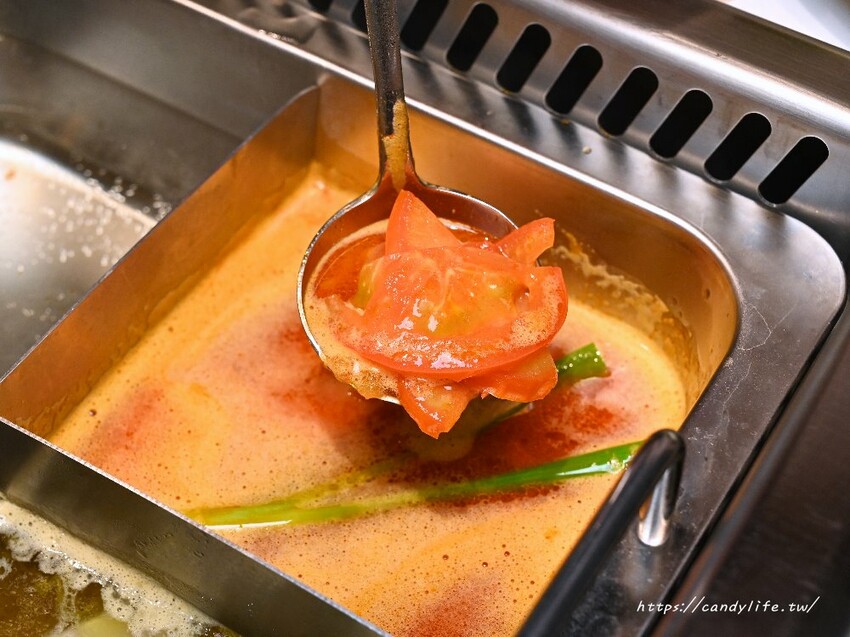 剛剛的招牌重慶牛油鍋跟酸菜魚鍋都是會辣的,如果不吃辣的朋友可以選番茄鍋或是蕈菇鍋,番茄鍋是採用新鮮番茄下去熬煮,裡頭還可以撈到新鮮的番茄果肉,湯頭喝起來酸V呀酸V的非常爽口