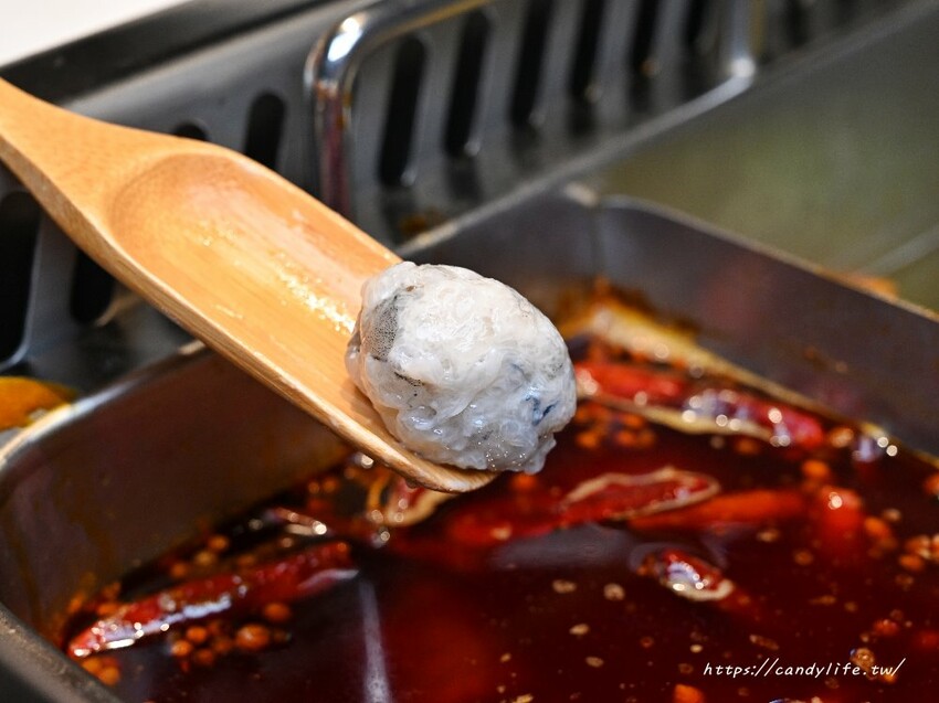 這道一樣有桌邊服務,服務人員會將蝦滑用成丸狀再下鍋,口感相當Q彈,裡頭還可以吃到鮮甜又彈牙的蝦肉,用料超實在