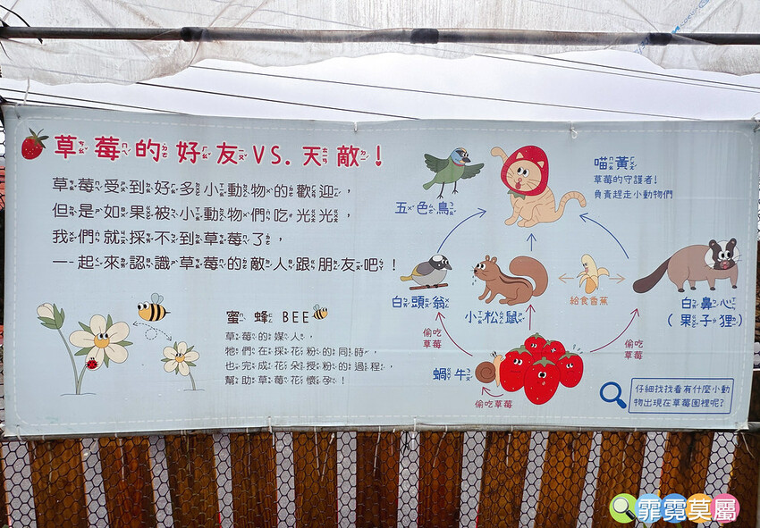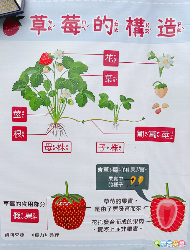 第一次看到這麼用心的農場,製作了超多的標語和看板來讓遊客認識草莓,不止採草莓也能寓教於樂邊學習喔!