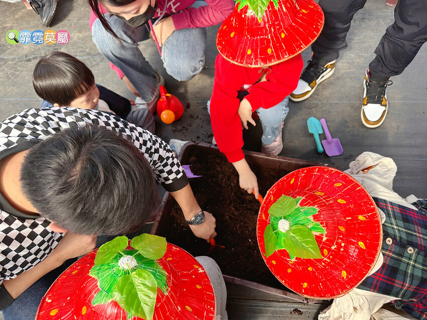 職業草莓達人的種植技巧是弓背向外種,這樣才能長出很多的草莓果實!! 店家有特別放上紅色竹籤標示讓大家讓辨識正確的種植方向,把竹籤朝內放在盆栽中心種下,就完成了草莓種植