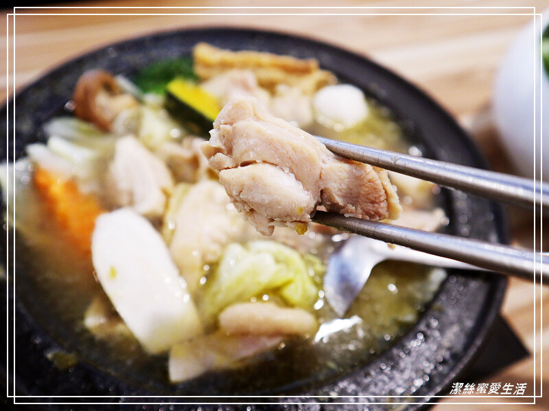 寒冬想來個暖呼呼雞湯,推薦這個蛤蜊剝皮辣椒雞鍋,這我很喜歡耶!都還沒加入菜盤配料,光腿肉部份就給得不少。