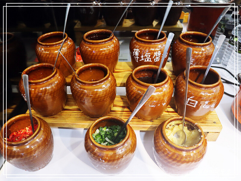 各式醬料在此自己調配,外頭基本上會寫上醬料名,不過有其中幾個因為字掉了,所以不太好辨認XD,之後看到店家努力在補上😆。
