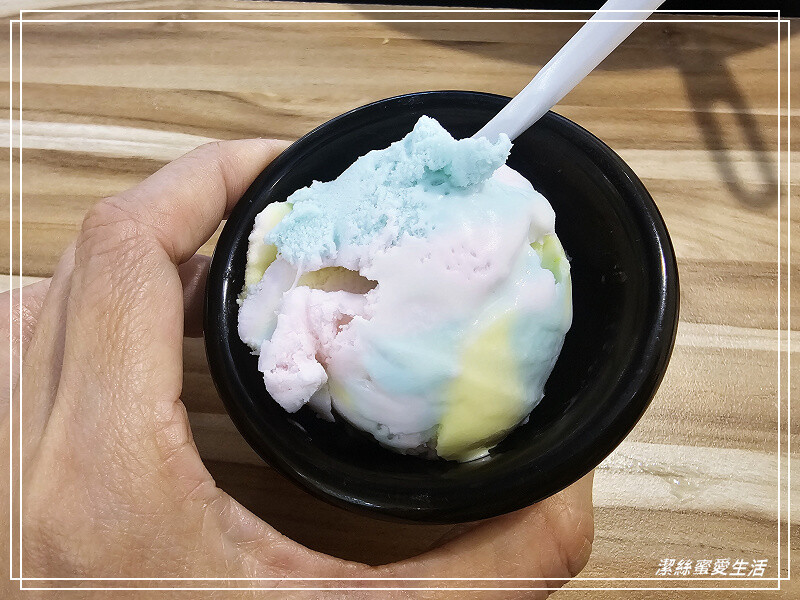 雞湯我喝了不少,整個吃超飽😂!最後來試試這彩虹冰淇淋口味,顏色美麗,吃起來也香甜可口,為這餐劃下完美句點。