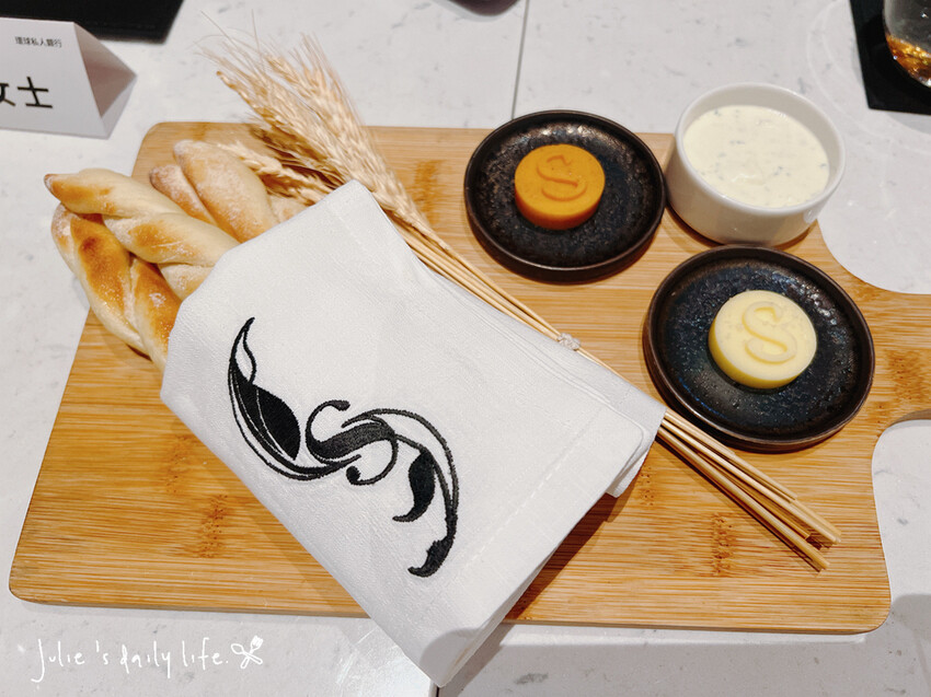 餐前麵包,是很可愛的麻花辮造型,烤的熱熱的蓋上面被送上桌。