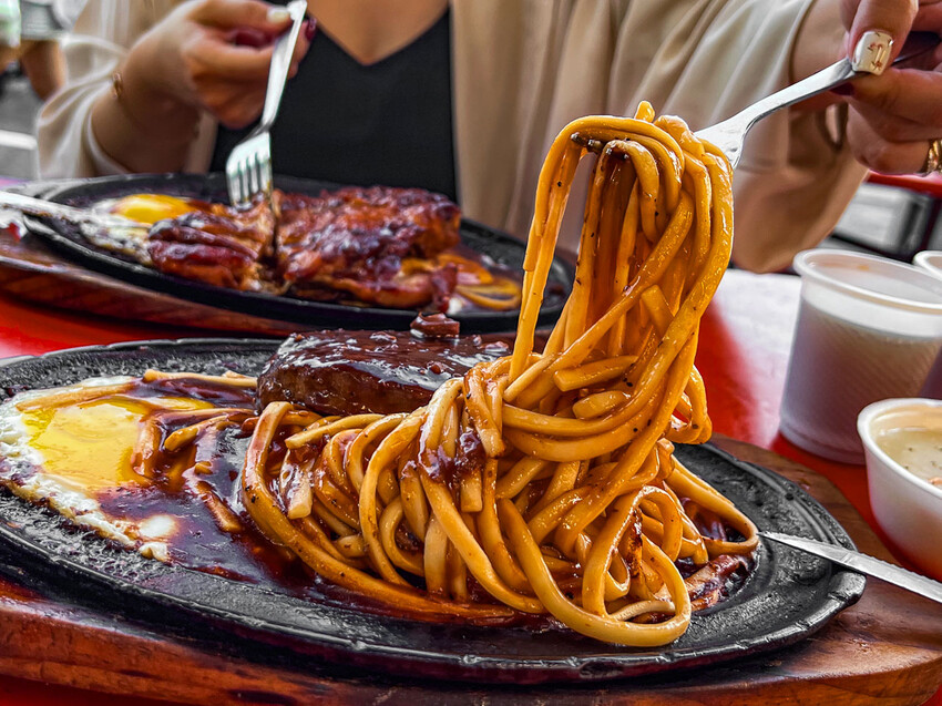 這的鐵板麵是用細扁麵,用大鐵鍋翻炒再放上炙熱的鐵板,鐵板上有塗上奶油,經過加熱奶油香氣整個釋放,加上番茄醬汁翻炒的鐵板麵,吃起來Q軟順口,味道也很夠,份量也很夠,吃完一份牛排超有飽足感的!