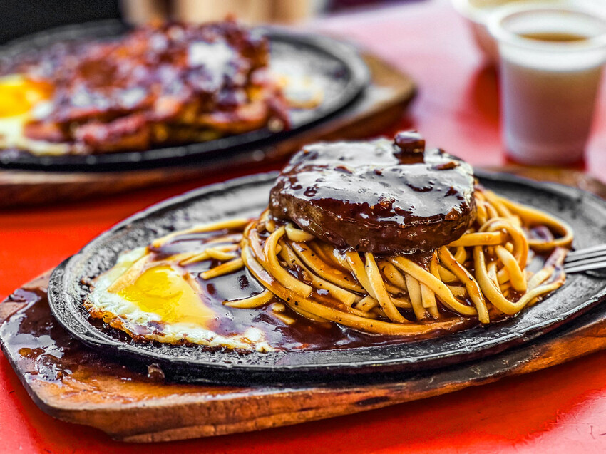 外帶用的鐵板麵跟蛋,鐵板麵炒好直接用鐵鍋分裝,根本來不及慢慢裝…