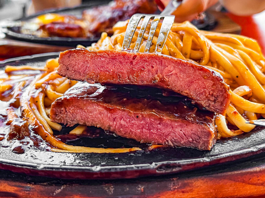 放牛排也是豪邁,反正就是把整個鐵板塞滿就對了!