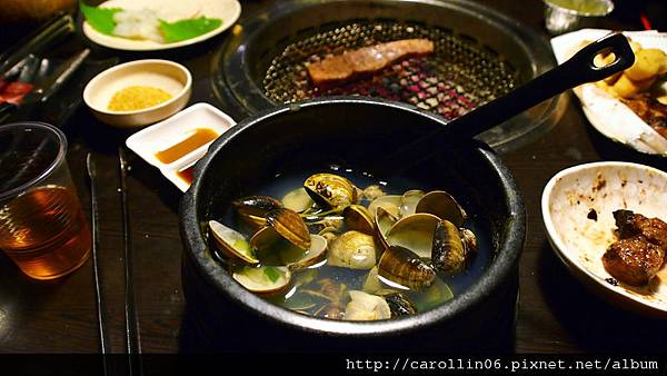 最後我還點了薑絲蛤蜊湯,可以另外點這個喝讓我很開心,其實我平常吃燒肉並非不想喝這湯,而是烤起來太佔空間,又被鋁箔紙包到看不出狀況。這碗送上來我就可以直接享用,而且那蛤蜊的用量真是有夠驚人,讓湯喝起來格外鮮甜。