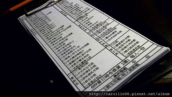 這間店的價位有399+10%、499+10%以及699+10%這三種價位,我們吃的是店內最高價位的每人699+10%,因此店內菜單上所有的東西都可以點選,只有菜單最底下的只有一人一份,以及天使紅蝦限制續點一份。