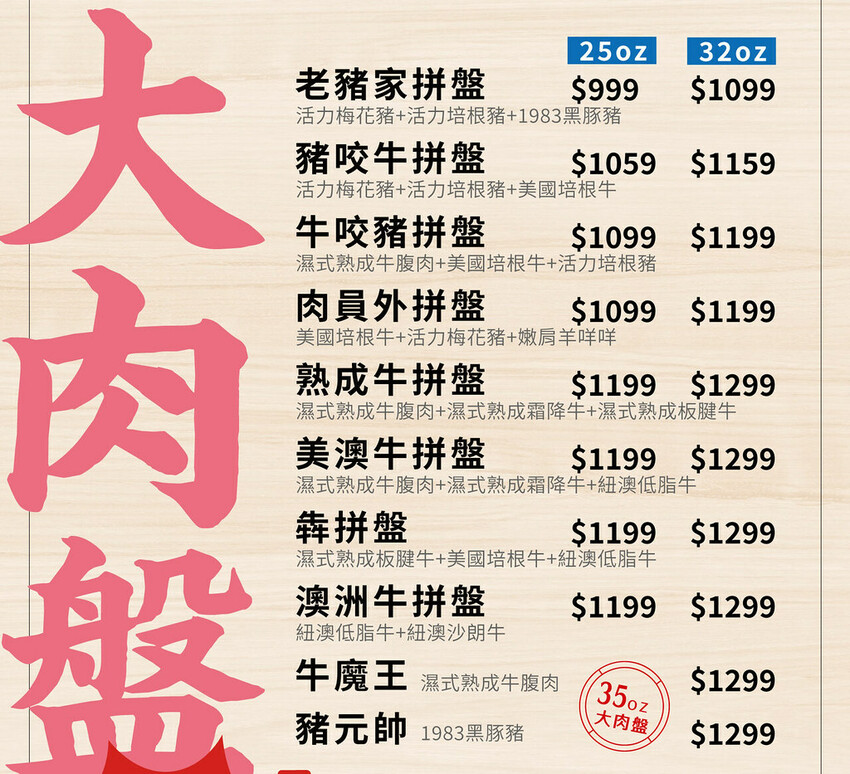 如果是大胃王也有提供最多32oz的肉盤可以單人或多人共享,另外想吃更好的肉品還有濕式熟成牛肉、洽富氣冷雞等更好選擇。設定的肉量也比一般火鍋店更加實在更有飽足感。平日中午來用餐還有3小時用餐時間!