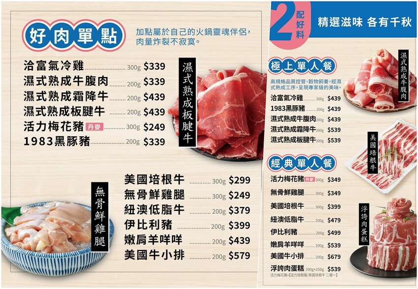 【肉多多火鍋台中│活力梅花豬349元/濕式熟成霜降牛549元】