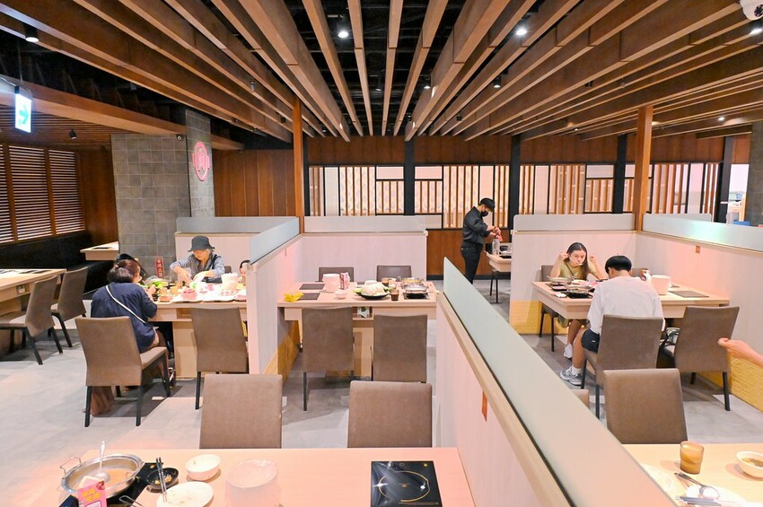 肉多多火鍋台中廣三店就在13樓轉角處挺好找的,整個外觀是日式輕木作色調設計,店內讓我有點意外的是座位蠻寬敞舒服的,