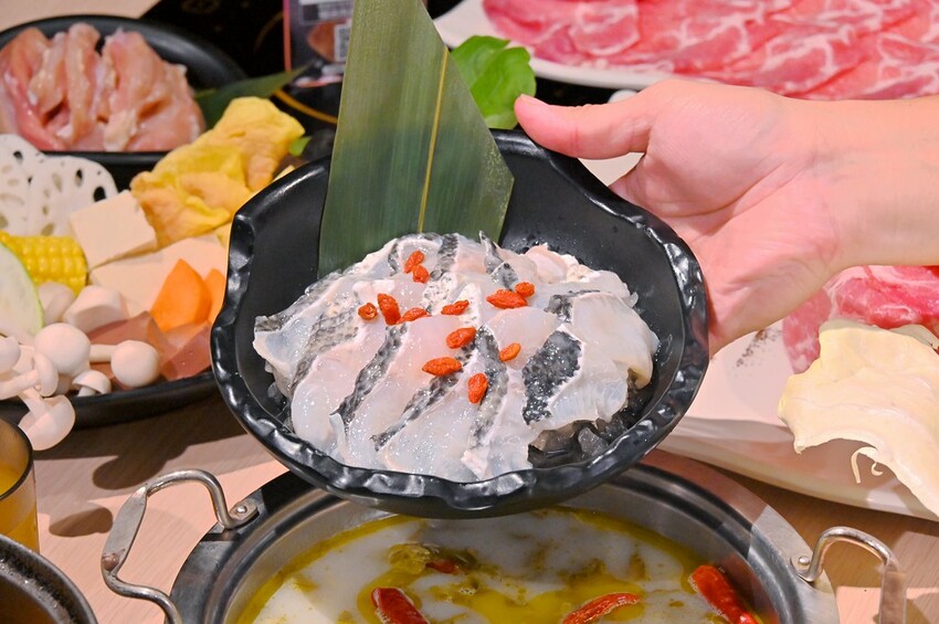 肉多多這份魚片分量相當夠,魚肉也大片厚實,涮煮熟後肉質相當鮮嫩好吃。不過除了搭配魚片,其實涮豬肉也蠻好吃的。