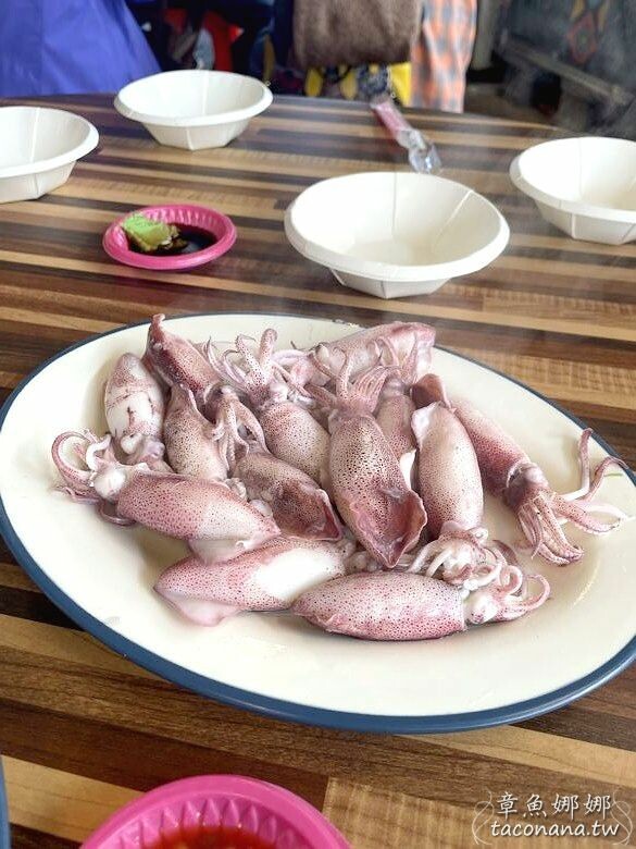 飽滿的小卷,來漁港吃新鮮不踩雷!沾上五味醬或芥末醬油都好搭。