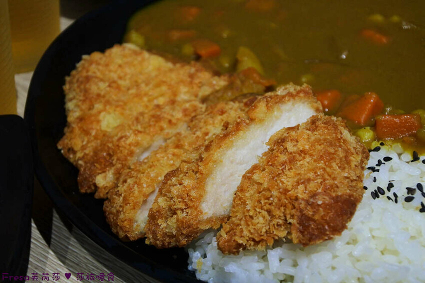 炸豬排金黃外衣,咬下脆口,裡頭豬排好嫩.