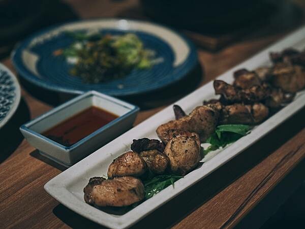 心釜飯主要就是三種食材,浦燒鰻魚,豐厚牛與地雞.可以選擇含飯和小菜煮物的套餐組合,也可以單點肉品.由於一路吃吃喝喝,我們是四人點了兩個釜飯套餐再加點一個單點地雞.(並不是所有的餐廳都願意讓消費者沒有點套餐喔,日本很多餐廳是一人都需要點一份餐點的.在點餐方面心釜飯真的很佛心)