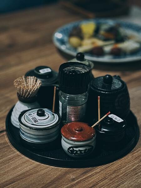 點完餐後,會先上一盤醬料,有胡椒,七味粉,秘製醬料,醬油,柚子胡椒…..等等,這是釜飯第二吃會用到的調醬.