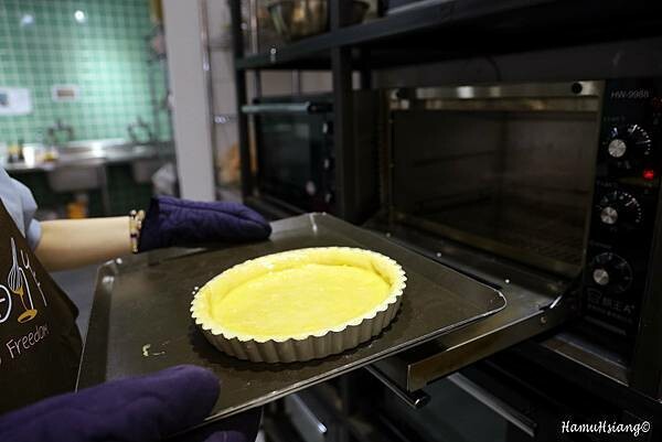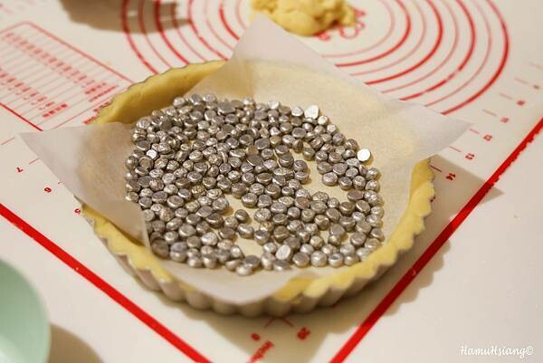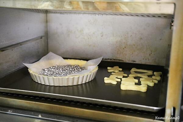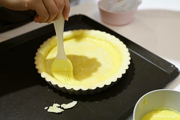 這期間我在派皮塗上防水層以防卡士達醬直接滲透過去