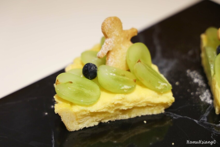 接著烤箱裡的塔皮好搂,放在一旁等他冷卻,這期間我們拿季節水果來切,是葡萄耶~