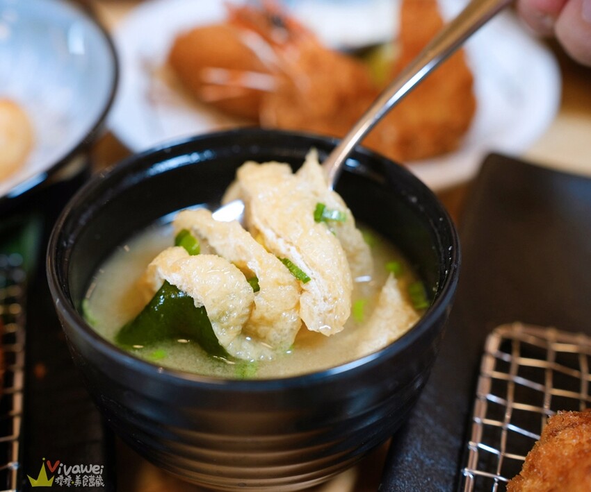 ▲他們的味噌湯也是可以免費續加的品項,裡面還有豆皮和海帶,用料蠻有誠意的,熱熱喝很暖身,我們這天就續了三碗,超愛的啦😍😍