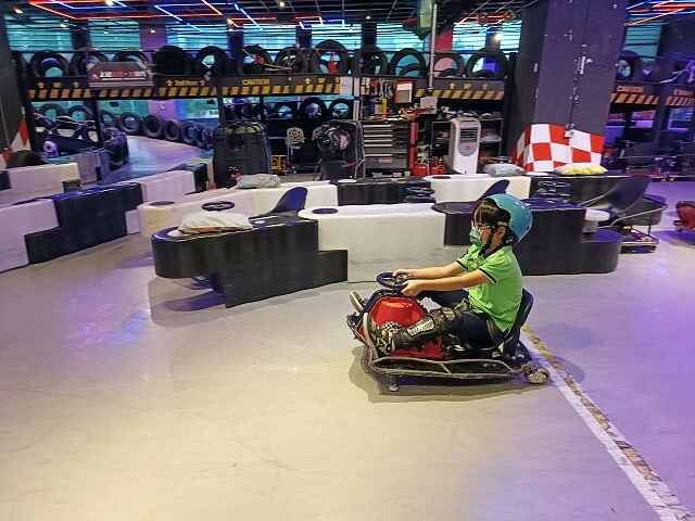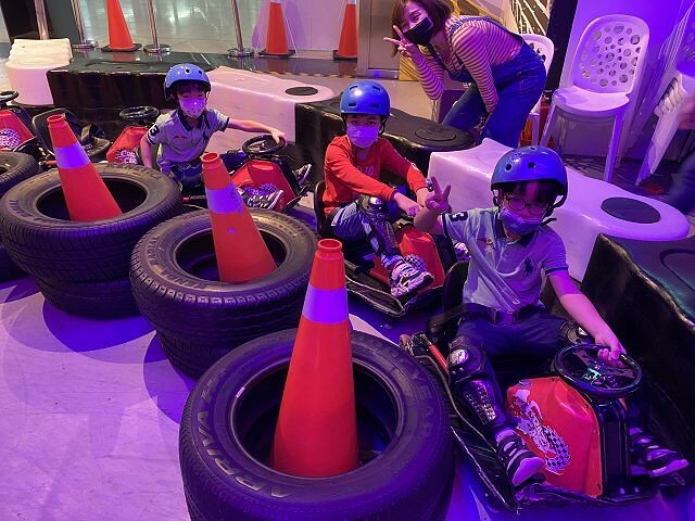 這裡備有小朋友專用的CC車,還有成人的XL車,大小朋友都可以感受衝刺甩尾的樂趣。大小車是分開體驗的,一回合CC車、一回合XL車,所以不用擔心安全性。