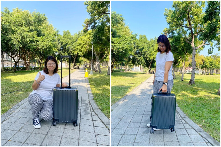 這個行李箱的箱體材質是鋁鎂合金,看起來不僅好看還特別耐用。而且,挑戰市面上最輕的行李箱,就像這咖,20吋的這款在空箱狀態下的重量只有3.9公斤,真的是輕盈到不行啊!