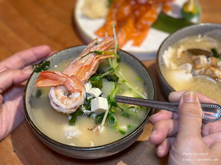 想喝的熱湯絕對要點熱呼呼的味增湯,一碗味增湯料也是給得很大方,有豆腐、海帶芽、小豆苗在裡面,好看又好喝,搭配柴魚和洋蔥提味,紅蝦味增湯和蛤蠣味增湯都不錯。