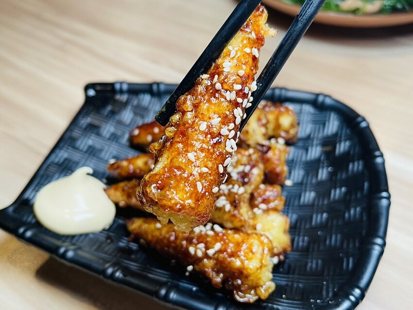 【仨食酒炭燒食堂】除了提供居酒屋最基本款的炸物、燒物等,還有丼飯、手捲跟生魚片等日式料理。