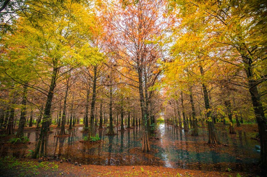 在水森林的正中央有一條貫穿森林的步道,如果要拍網美照這裡就是首選了,隨便拍都美到炸掉