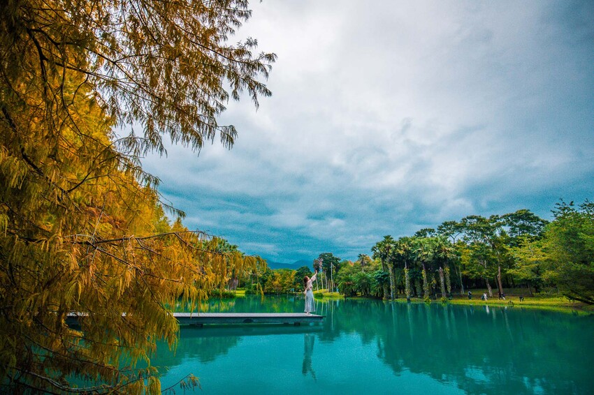 在小徑的一旁有一座延伸到夢幻湖中央的步道,這裡可是超好拍的網美景點,往中間一站,面對湖景往外拍,超有氣勢的!