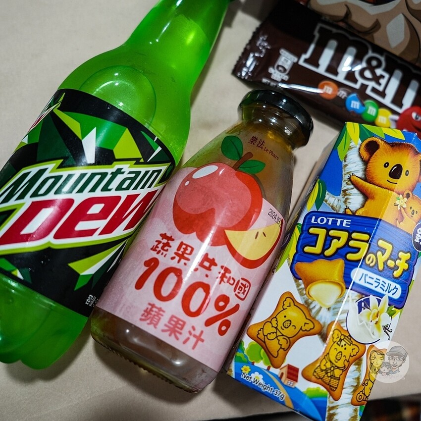 其他四款商品都換來了有激浪汽水、蘋果汁、小熊餅乾和MM。