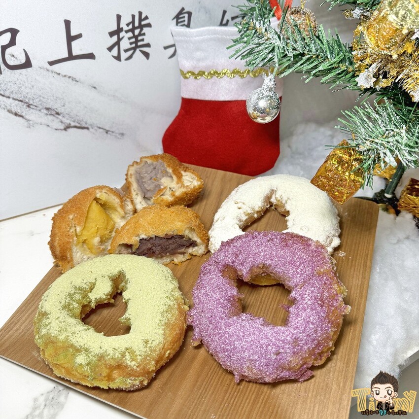 甜甜圈分脆皮和酥皮,脆皮由特製粉漿呈現出吃餅乾般的脆感,酥皮則由金黃酥脆的酥皮包覆,加上內裡麵團軟綿入味,令人有著不同層次的豐富口感~