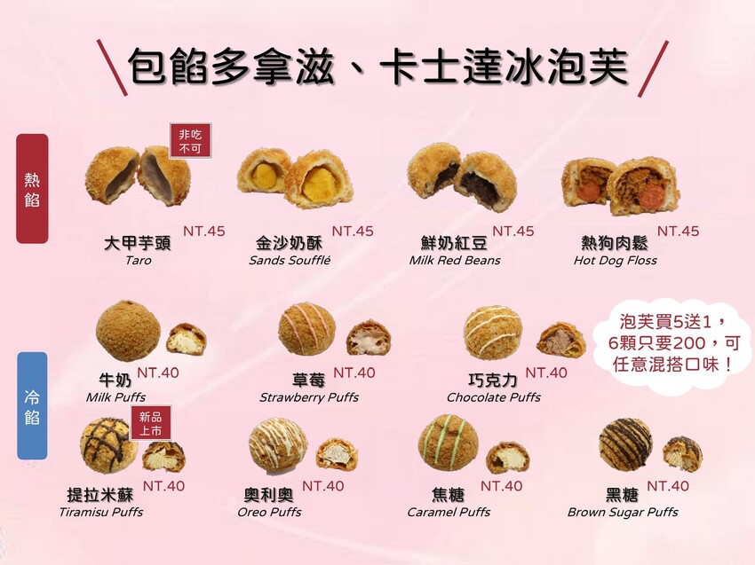 包餡多拿滋和爆漿的卡士達冰泡芙也不能錯過