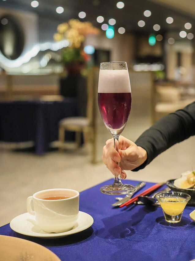從大廳進入,影入眼簾的寬闊有如一座西式的城堡宮廷,挑高寬闊的空間不僅釋放城市中人與人的匆忙,大氣且雅致的設計裝潢風格,有別於華麗所帶來的距離感,吧檯背景的設計有著日式的靜寂風,在前台用餐似乎也是不錯的選擇;桌次方面很特別,有二~四人桌,也有西式的八~十二人長桌,在如此環境整個人都感覺高貴了起來。