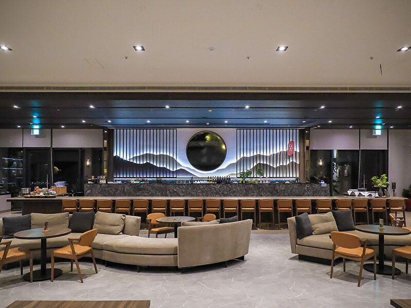 旁門一側走出,這是外部空間,若是在這裡喝著下午茶也有著不同美感,望前望去就是湖口的夜景,過去來金色天地賞的就是這一片燈海。