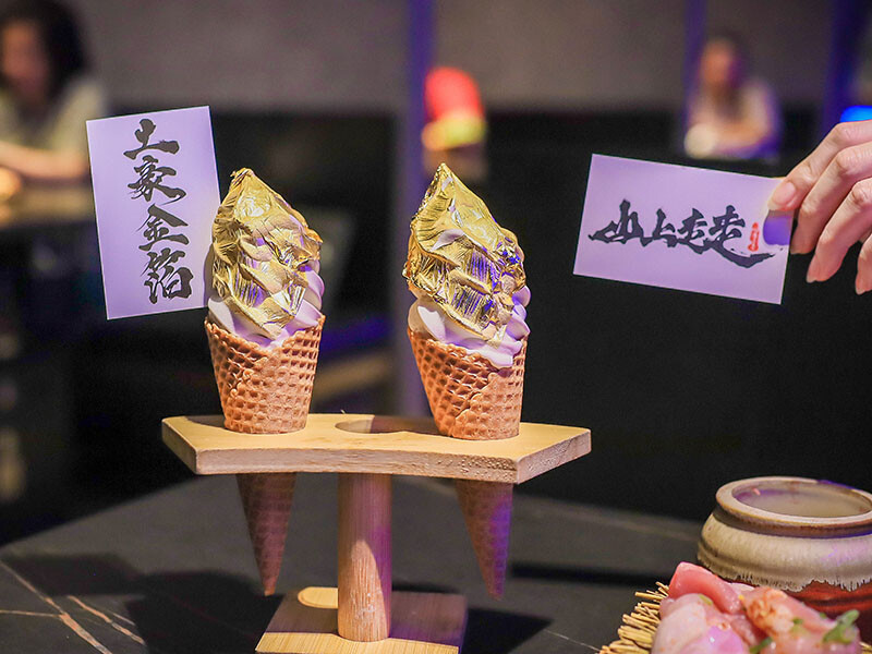 除了和牛,第二期待就是它!如果當月壽星來訪可是免費贈送喔!大片金箔覆蓋霜淇淋超吸睛,奢華貴氣值滿點,每個人拿到根本迫不及待打卡分享,畢竟這是一個難得吃飽炫腹又炫富的時刻嘛~
