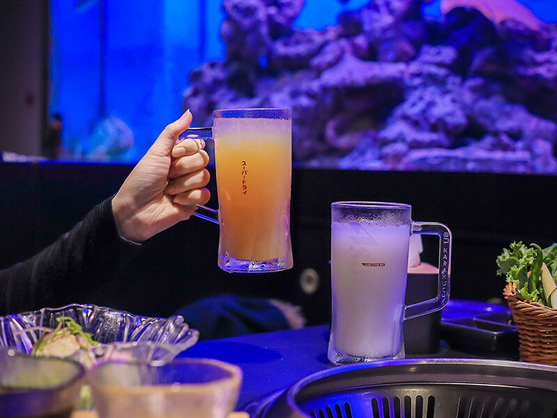 燒烤期間送上解膩醋飲,漂亮的高腳杯當然是要乾杯一下囉