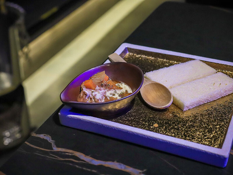現沖牛肉是最能品嘗牛肉鮮美的料理方式,牛肉香甜沖入湯中,牛肉保有鮮嫩口感,其中湯頭帶有些許辛香,喝著芬芳清爽也是無菜單料理的最末餐食。