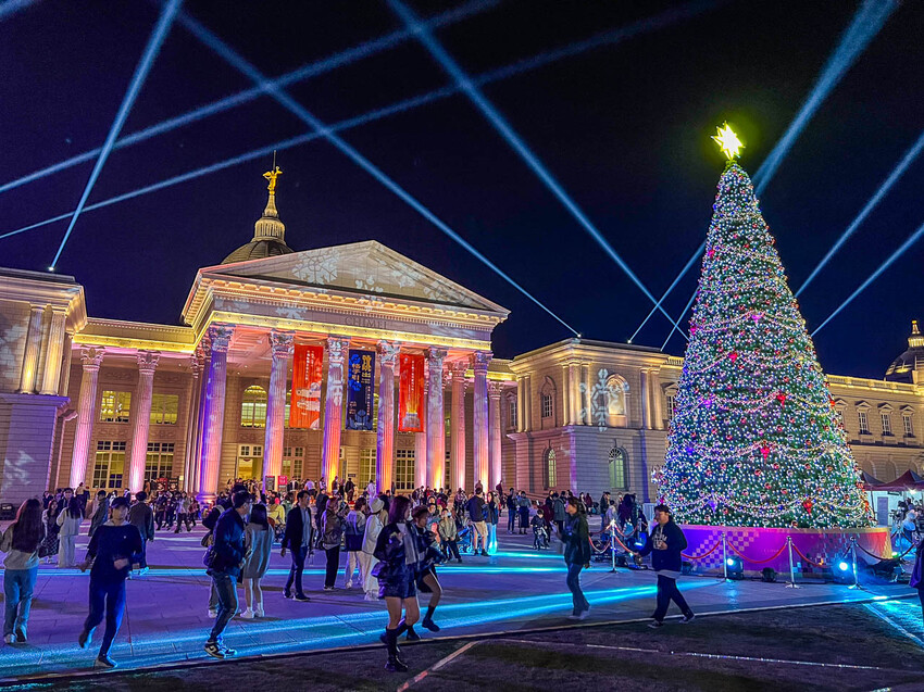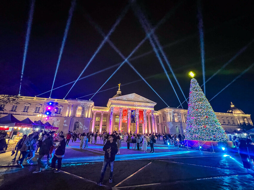 奇美博物館2023聖誕週末DISCO派對的活動很多,像是年年都大受好評的聖誕市集以及音樂表演、星光電影、主題展覽等活動,全部都充滿濃厚的聖誕節慶氛圍,最吸睛的就是奇美博物館館前廣場的超大聖誕樹,每到整點還有燈光音樂秀(19:00~21:00)