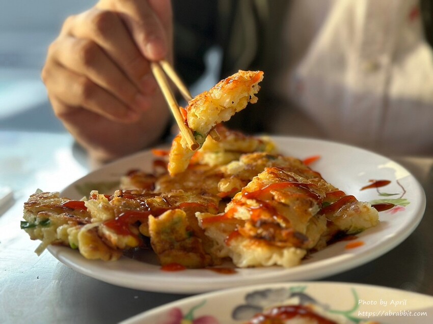 煎餅一樣用的是粉漿去煎,但不同的是,什錦煎餅多了很多蔬菜在裡頭,有蔥花、高麗菜和紅蘿蔔,吃起來口感十足,飽足感也加分。