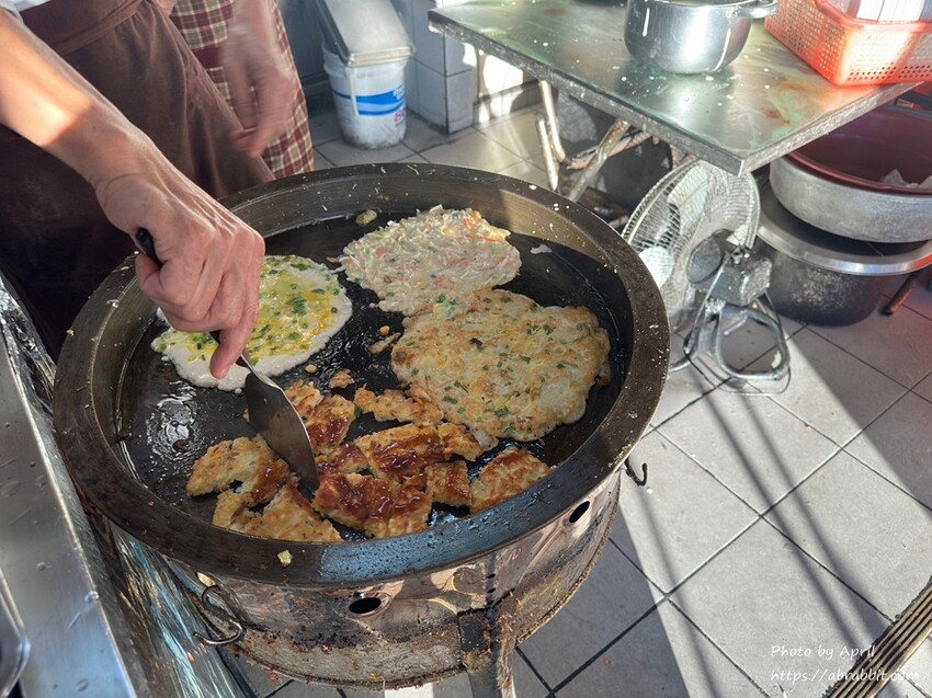 這家北屯蛋餅位於進化北路與國校巷交叉路口,早上賣蛋餅、中午過後賣蚵嗲。