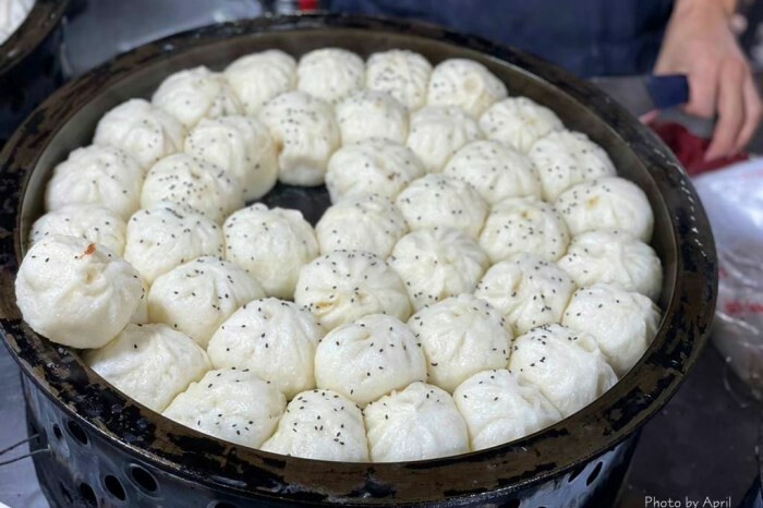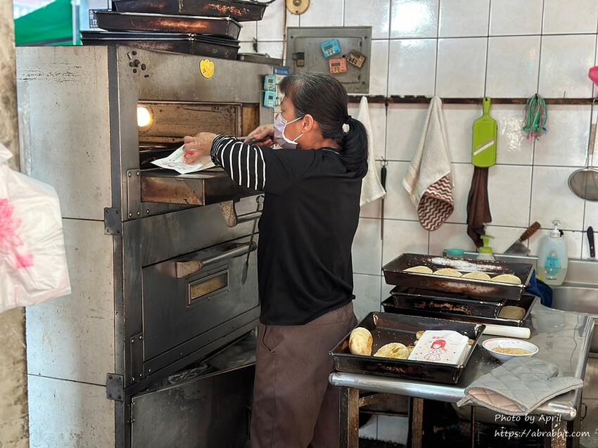點燒餅的話,老闆會從後面的烤箱拿出燒餅,這燒餅外皮有很多白芝麻咬起來很有香氣,我點了燒餅夾菜脯蛋,覺得不錯吃,超級古早味。