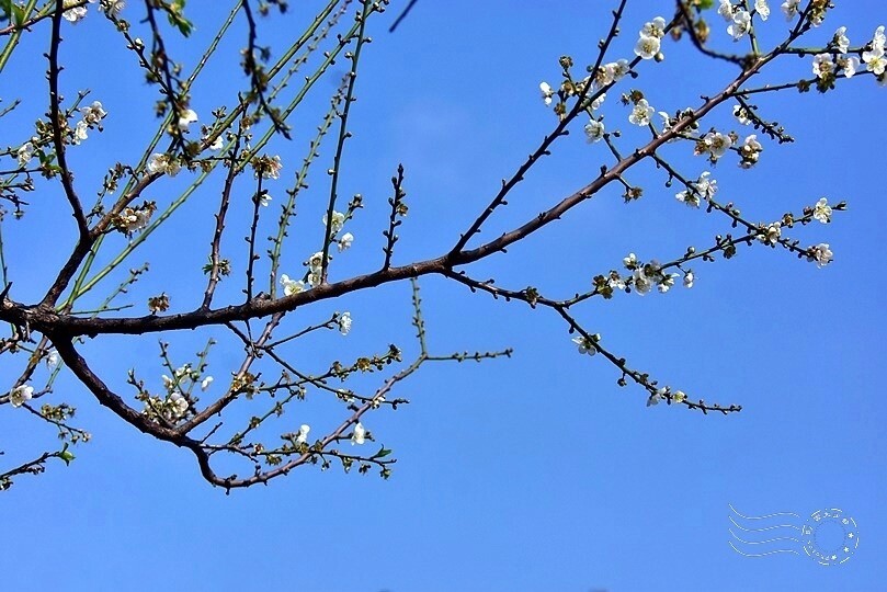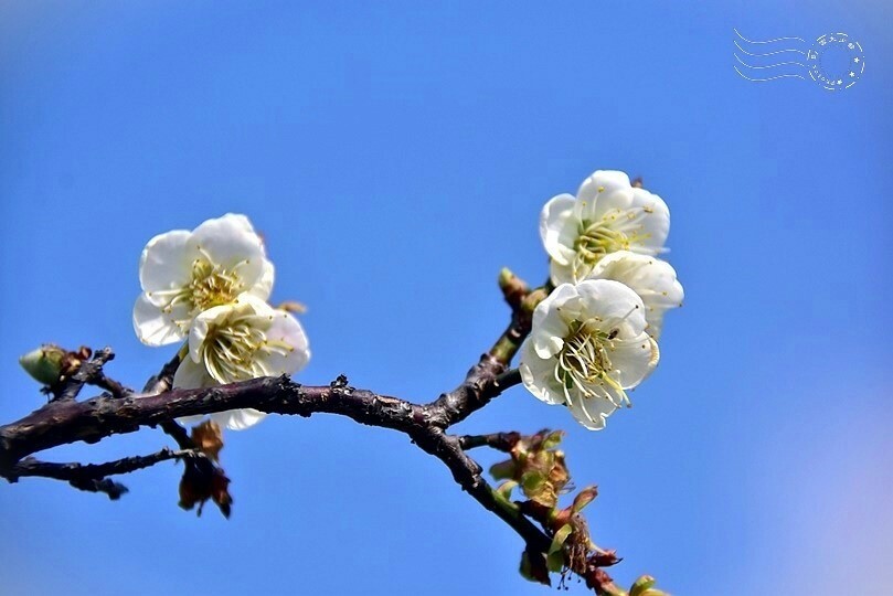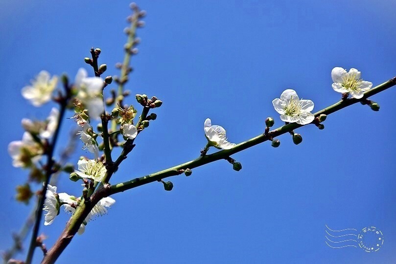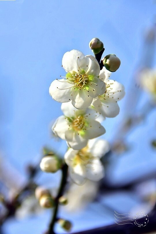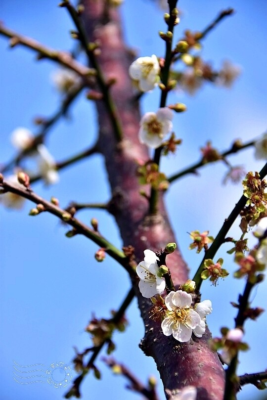 不知是否花季初始的關係?朵朵白梅均偏細小,甚至相當迷你。