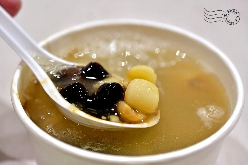 ↓這時候再配上一碗黑糖粉圓摘心蓮子湯($70),無上享受。粉圓煮得非常透,蓮子軟而不爛,非常養生且銷魂。如果覺得黑糖太甜,現場提供自助加冰,相當貼心。
