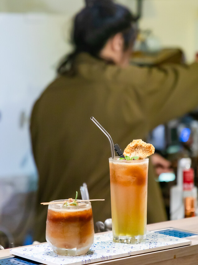 楊桃、梅酒、海鹽、肯亞SEO、燒酒漬烏梅。一款以楊桃、梅酒調製而成的咖啡調酒,搭配咖啡的苦澀與回甘,燒酒漬烏梅則是飲料的點綴,我覺得還滿好喝的。