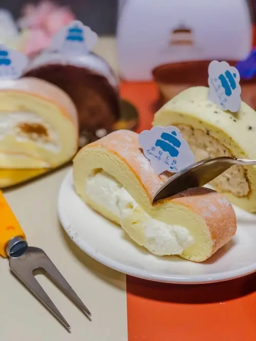 伴隨蛋糕捲蓬鬆柔軟與隱隱的蜂蜜清甜。